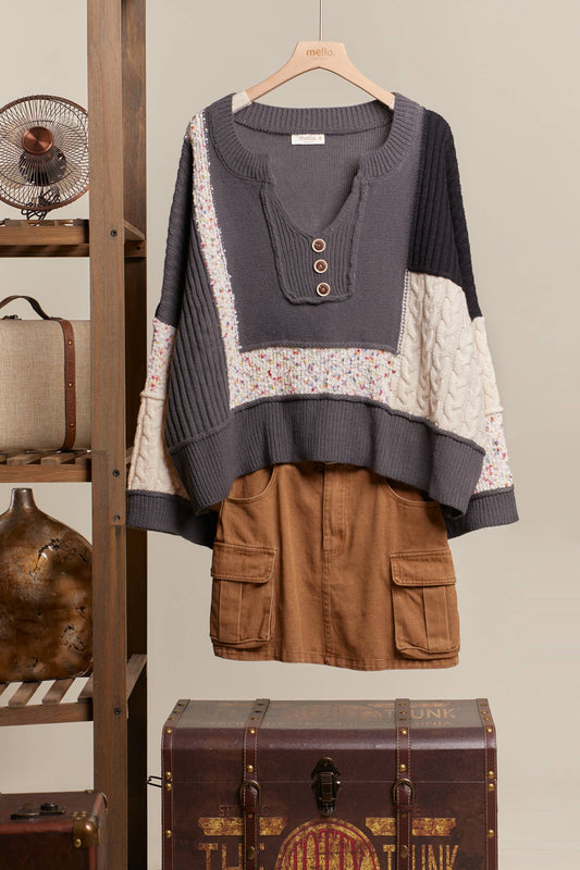 Candy Multi Fabric Color Block Lace Sweater