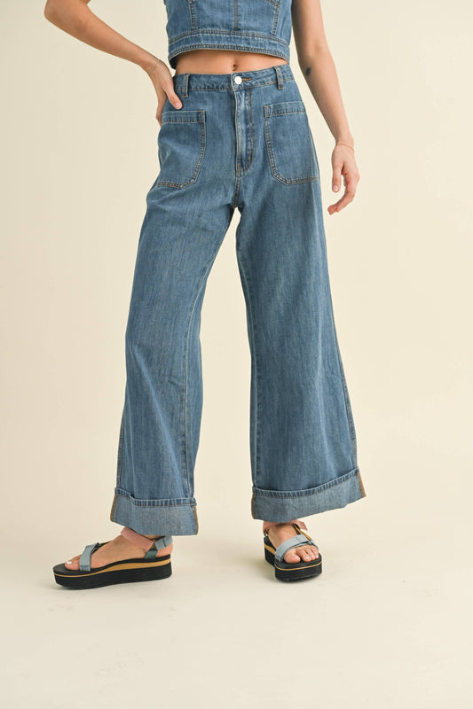 Caty Cuffed Bottom with Front Pocket Denim Pants